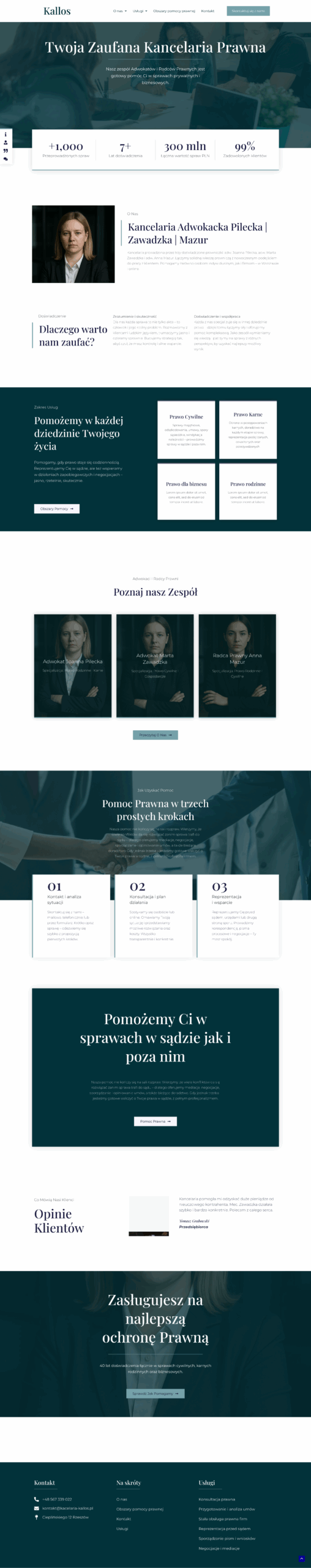 Stworzyłam kompleksową stronę internetową dla kancelarii adwokackiej, która specjalizuje się w obsłudze klientów indywidualnych oraz przedsiębiorców. Głównym celem projektu było zaprezentowanie kancelarii jako nowoczesnej, konkretnej i skutecznej, przy jednoczesnym zachowaniu tonu profesjonalizmu i zaufania.